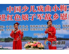 12月27日电今天下午,送欢乐、下基层中国少儿戏曲小梅花走进海南红色娘子军故乡慰问演出活动在琼海市塔洋镇开展。 来自于北京、江苏、安徽、郑州、杭州各地,不同剧种的中国少儿戏曲小梅花奖获得者、专业教师及戏曲名家30多人齐聚海南,登台献艺。 昨天,该活动还走进海口景