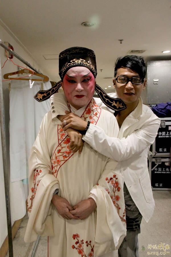 演出前,他特地跑到化妆间“探班”,认真看汪世瑜化妆;他还跟资深戏迷们一样,在后台苦等40分钟,为的是亲手为汪世瑜送上鲜花聊表心意。