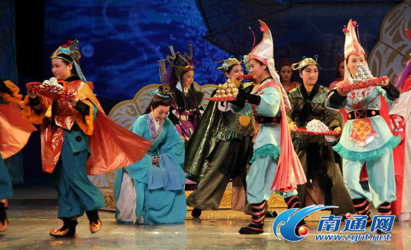 7月2日,南京市越剧团演员在表演越剧《柳毅传书》。当日,由南京市越剧团担纲演出的多媒体大型神话越剧《柳毅传书》在南通更俗剧院上演。此次《柳毅传书》演出经过重新排演,将传统越剧风味与时代色彩相融合,为观众带来一场感官盛宴。记者 黄哲
