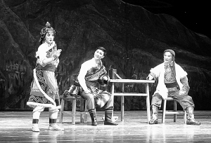 每日甘肃网-西部商报讯 昨晚8时许,由甘肃省委宣传部、省争先创优领导小组办公室、省卫生厅、省文化厅、省民委、省文联主办,中共甘南州委、甘南州人民政府协办,省京剧团负责创排的大型现代京剧《草原曼巴》在兰州金城大剧院审查演出。